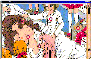6〜9ヶ所を正解するとご褒美のCGが出て、10ヶ所全部を指摘するとアニメーションする別のCGが表示される。7〜8ヶ所を見つけるのはそれほど難しくないが、残り2ヶ所はかなり難しく難易度は相当に高い。出題数は全部で6問で、ご褒美CGのアニメーションがけっこういやらしい。
